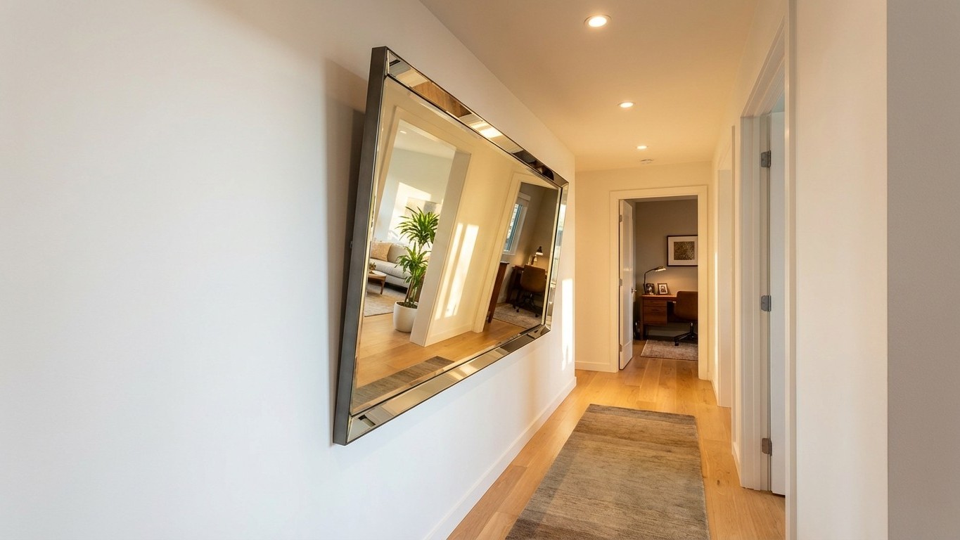 The effectiveness of angled mirrors lies in basic principles of reflection and perception. when a mirror sits perfectly flat against the wall, it captures and reflects whatever is directly opposite, which in most narrow hallways means another wall or closed doors. This creates a static reflection that doesn’t contribute to spatial expansion.