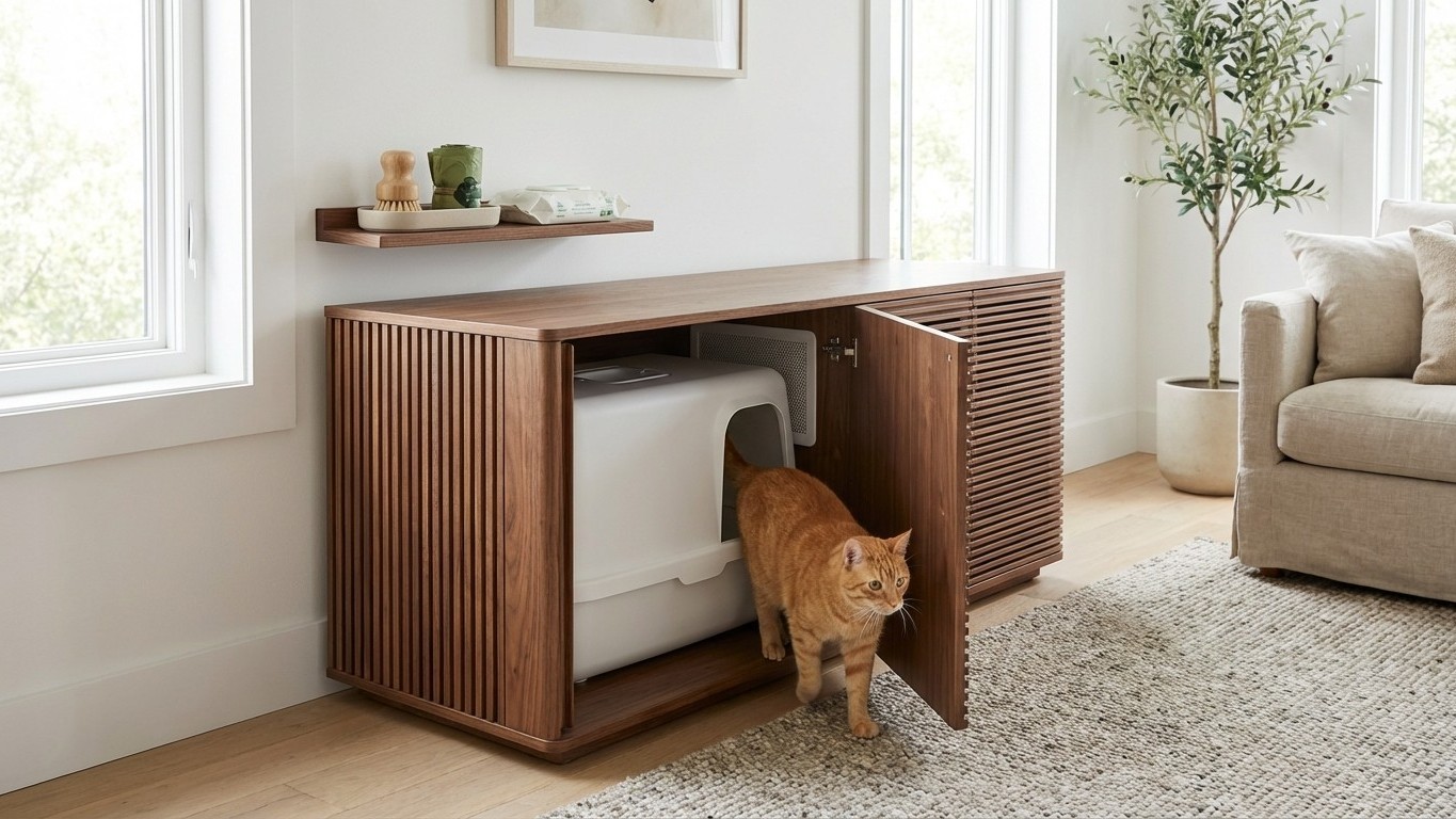 A well-designed cabinet can improve the cat’s experience by giving privacy while keeping an easy escape route and enough headroom to turn, dig, and posture normally. Done right, it feels like a quiet bathroom. Done wrong, it feels like a cramped port-a-potty with a single exit.